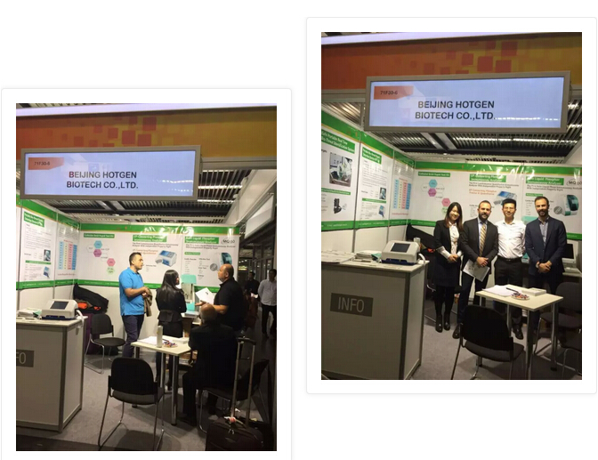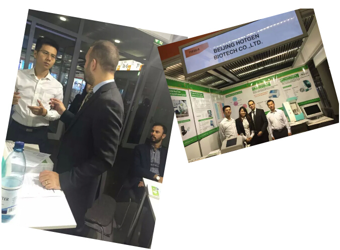 伴随着连绵的小雨,世界医疗第一展德国MEDICA于11月19落下帷幕,此次盛会是热景生物第一次登上国际医疗行业的大舞台,第一次走出国门,让世界各界的朋友了解和关注北京热景生物技术有限公司。热景生物展位在H7.1 30-6,首次以简洁清新绿色的国际化形象展现在大会上,并吸引了大批客户。其中我们的明星产品“国内拥有自主知识产权上转发光POCT免疫分析仪,受到大多数客户的青睐,并且达成多家意向客户;另外,我们的新星”MQ60“也不甘示弱,吸引了众多的客户来我公司展位洽谈。通过他们对公司的了解和对产品的肯定,坚定了我们走出国门走向世界的信心。
